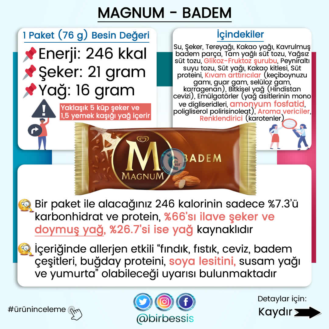 Bağış, İ. (2019). Algida Magnum – Badem Kaç Kalori? İçinde Hangi Katkı Maddeleri Var?. Ürün İnceleme. URL: https://www.birbes.com/?p=15915. Date of Access: October 2 2025.