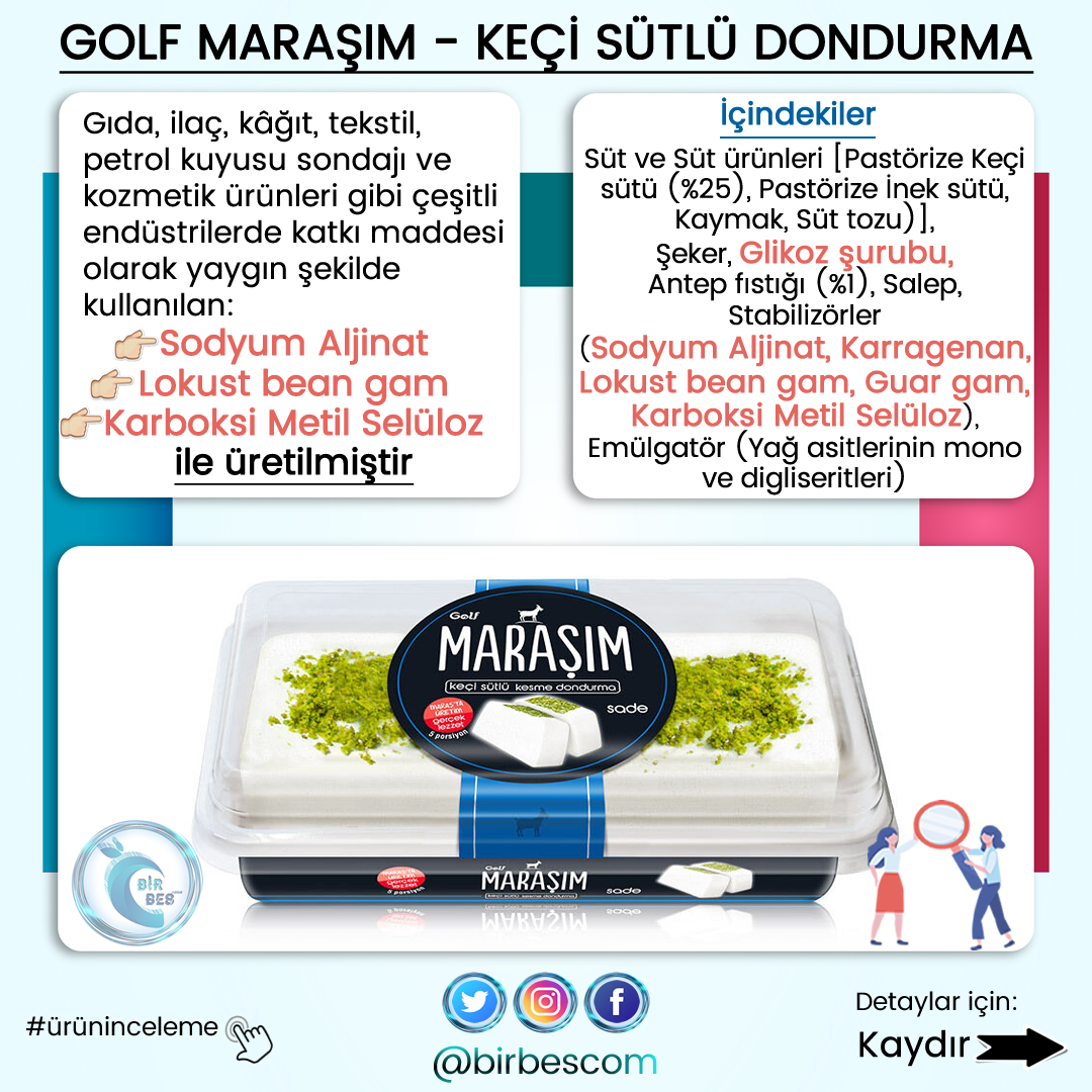 Yaz aylarında serinlemek bahanesiyle düştüğümüz, farklı çeşit dondurmalar arasında özellikle maraş usulü dondurma adı altında karşımıza çıkan “Golf Keçi Sütlü Maraşım” ürününü inceleyeceğiz😋.